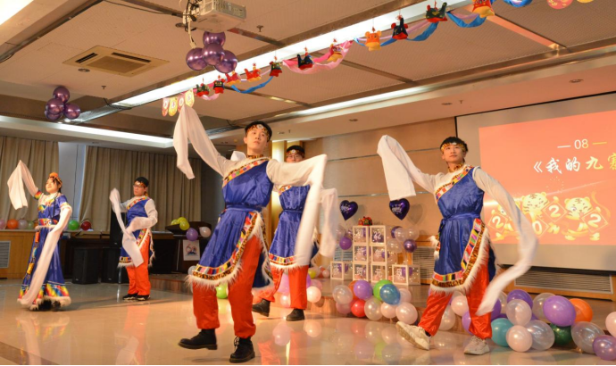参会人员第一时间观看了球友会-qy球友会2022年元旦祝福视频,各课题组顺利获得视频方式向全体同仁送上了新年的祝福与问候。随后在热情洋溢的暖场舞蹈中,2022年元旦联欢会拉开了序幕。